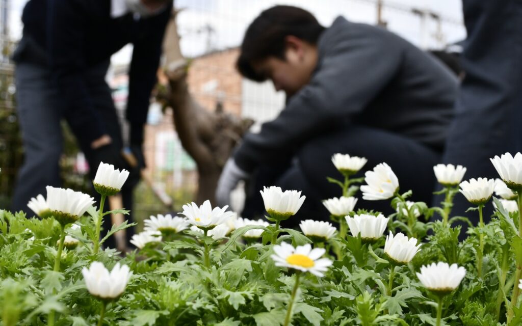 アンビシャス応援団に参画するナサ工業(株)が中心となり、須恵高校とともにJR香椎線 須恵中央駅の花壇に季節の花を植栽する活動を行っています。